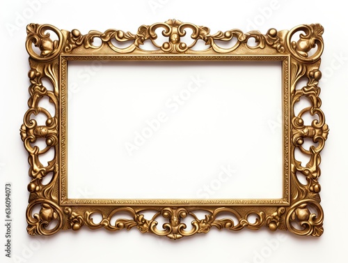Golden frame on white background. Baroque vintage art border. Victorian ornate decor