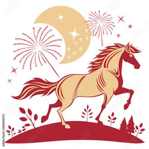 Golden Galloping Horse Vector. Perfect for: New Year posters, high-end digital cards