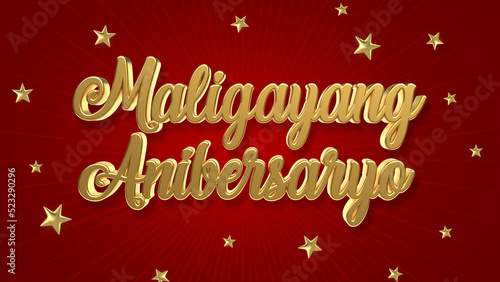 Golden Happy Anniversary in Filipino, Maligayang Anibersaryo. 3d Illustration.