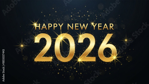 Golden happy new year 2026 celebration with sparkling stars on dark background