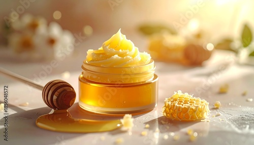 Golden honey lip balm in a jar, natural beeswax and shea butter moisturizer for soft lips