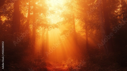 Golden Hour Forest: Sunbeams Through Misty Woods