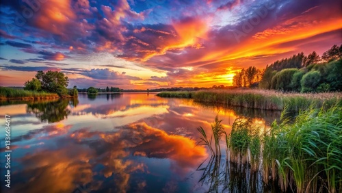 Golden hour paints Milicz's sunset ponds, a landscape masterpiece composed with the rule of thirds.