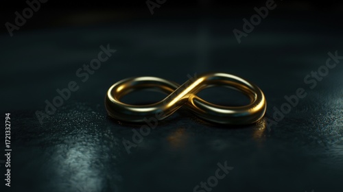 Golden infinity symbol on a dark surface.