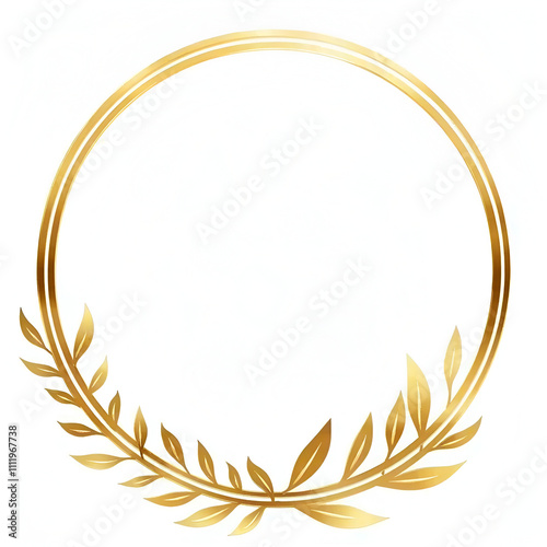 Golden leaf circle border, white background