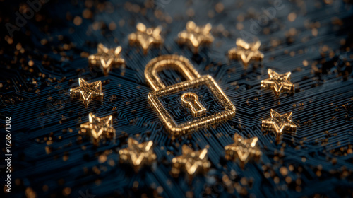 Golden padlock and stars symbolizing GDPR security