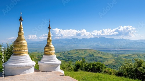 Golden Pagodas on Mountaintop