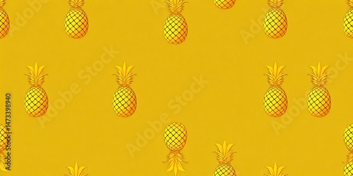 Golden pineapple repeat pattern on textured background, ample copy space, motif, fruit