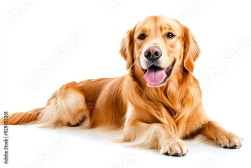 Golden Retriever dog - Canis lupus familiaris - great popular family domestic animal good with children isolated on white background tongue out while , ai