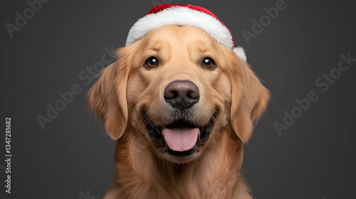 Golden Retriever Wearing Santa Hat Studio Portrait