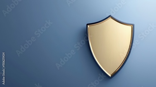 Golden Shield Emblem on Smooth Blue Background Representing Security, Protection, and Trust in Digital and Physical Spaces for Creative and Corporate Use