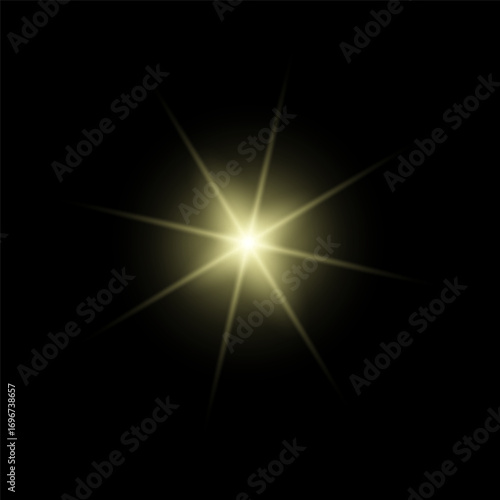 Golden sparkle lights, flashing lights, light effects, sunlight lens flare, glowing ray beams, sparkling starsicon on black background.