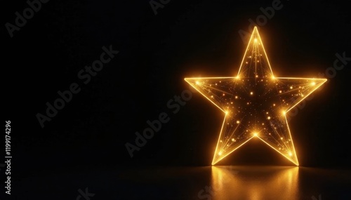 Golden star shaped light fixture, black background, background, holiday