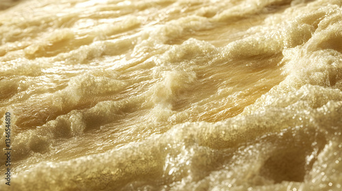 Golden sunlight dances on the frothy waves, a serene coastal scene of sunlit foam and gentle ripples.