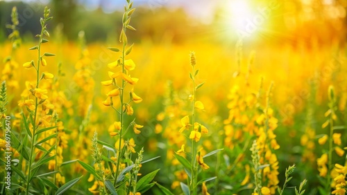 Golden Sunlit Wildflowers with a Sunburst - Close-up of Yellow Flowers in a Field
