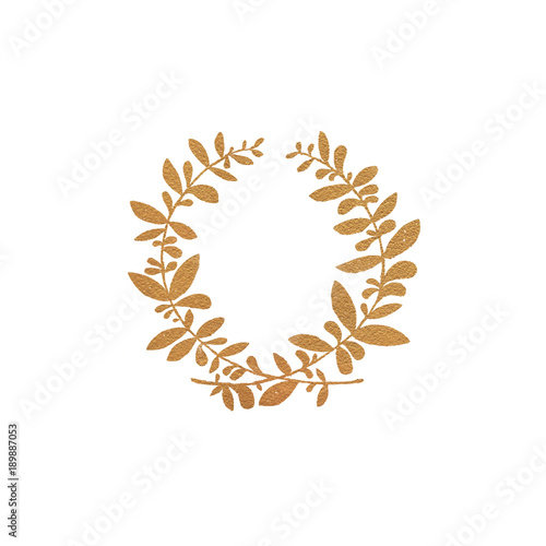 Golden wedding rustic wreath , rural restaurant banner background with natural gold foil textures. For wedding card, greeting cards and creation of hipster labels and natural eco and bio shops.