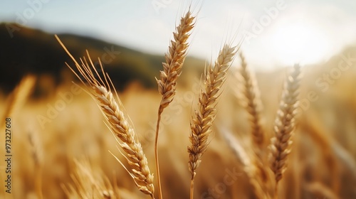 Golden wheat field swaying in summer breeze - nature's tranquility for print, card, poster