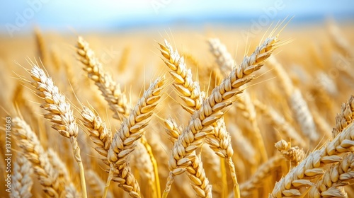 Golden Wheat Field with Lush Ear Spikes Under Clear Sky