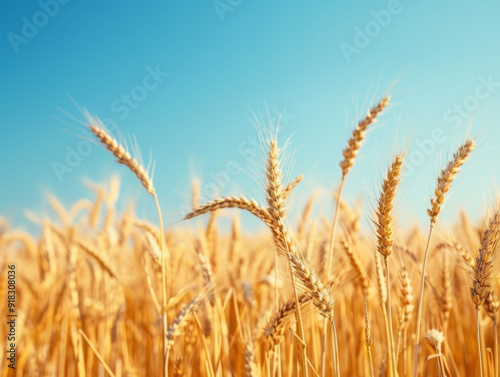 Golden Wheat Stalks in a Field Under a Blue Sky