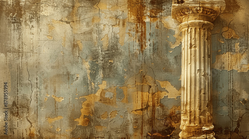 golden yellow ancient greece roman empire texture wallpaper background with cracked wall antique column empty copyspace pillars old buildings