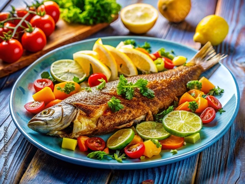 Golden-Fried Fish with Vibrant Vegetable Trio