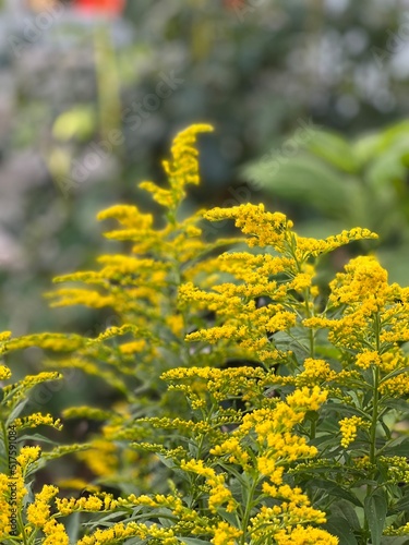 goldenrod solidago, yellow flowers, wildflowers in full bloom, close up