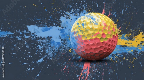 Golf ball sport symbol colorful splash art illustration wide banner