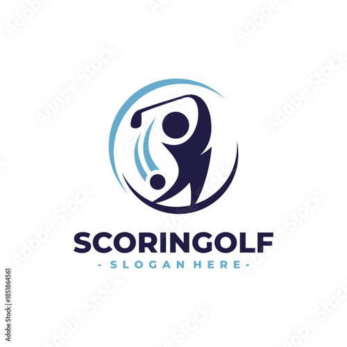 Golf Sports Logo Design Vector. Concept of a golfer swing when hitting the ball.