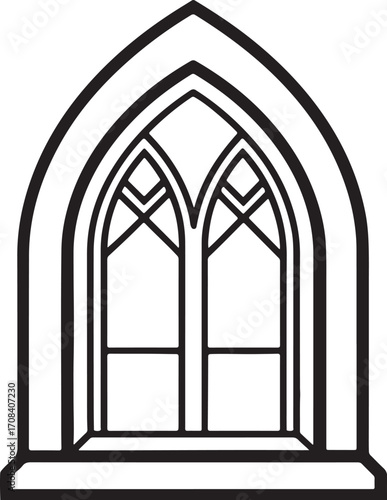 gothic window line art, coloring book page line art drawing, vector and illustration
