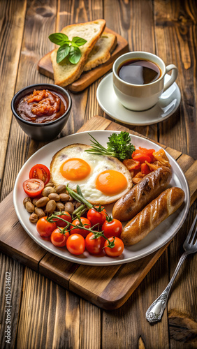 Gourmet English Breakfast on Wooden Table