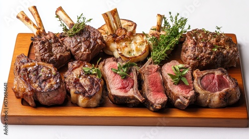 Gourmet Meat Platter with Succulent Cuts and Fresh Herbs Displayed