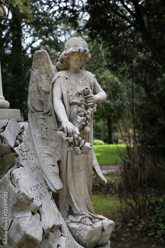 Grabstein mit Engel auf einem Friedhof in Frankfurt
