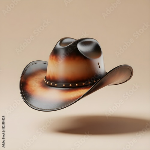 Gradient Cowboy Hat Floating on Neutral Beige Background