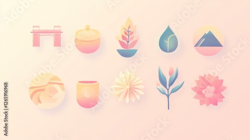 Gradient Icon Collection: Nature, Architecture, and Symbolism Set