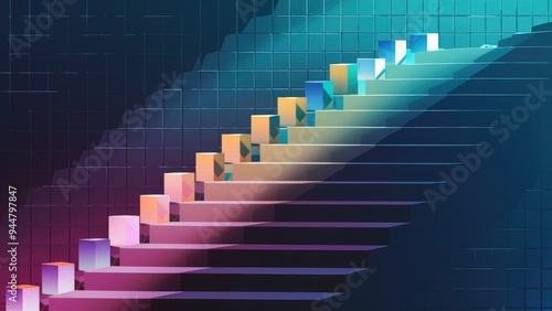 Gradient of 3D cubes ascending stairs. Business illustration.