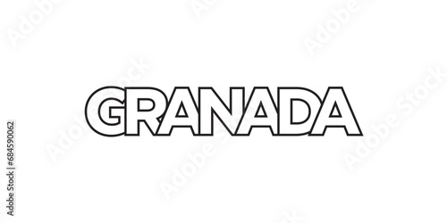 Granada in the Spain emblem. The design features a geometric style, vector illustration with bold typography in a modern font. The graphic slogan lettering.