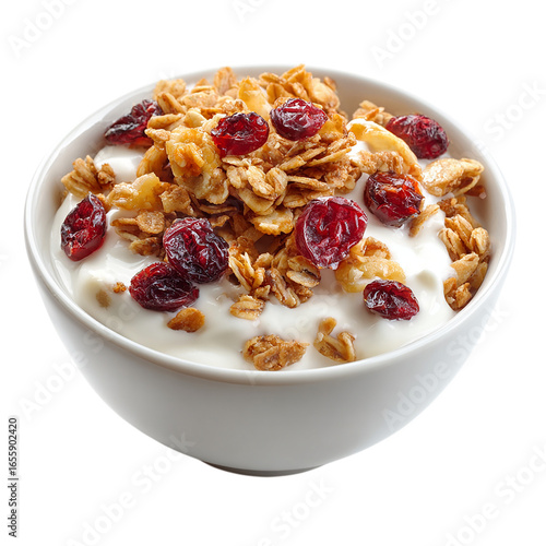 Granola with Yogurt and Dried Cranberries on transparent background