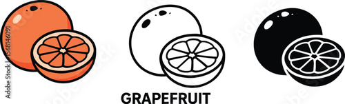 Grapefruit fruit vector set with colored, outline, and silhouette styles