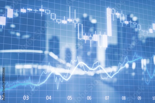 graph stock market on business city background.