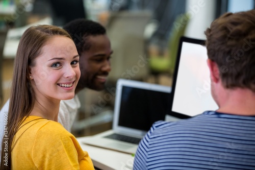 Graphic designer working with colleagues in office