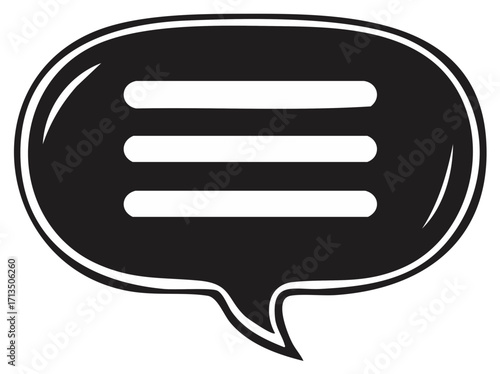 Graphic illustration of a speech bubble containing three horizontal bars, indicating communication.