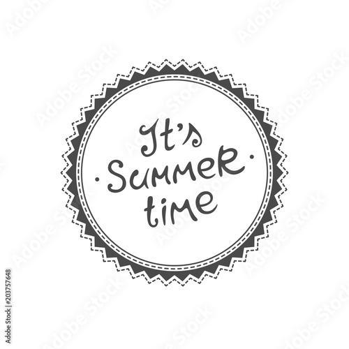 Graphic inscription It's Summer time! Vector icon with text. Template with abstract sun. design logo