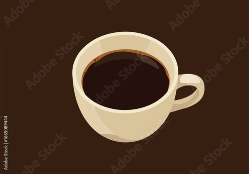 Graphic of coffee in a cup, resting, on a brown background, drink break poster use