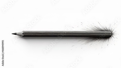 Graphite pencil with shavings on white background