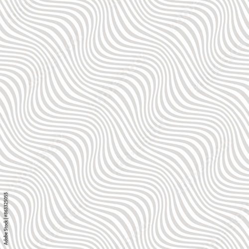 Gray and white diagonal wavy lines seamless pattern. Subtle vector abstract liquid stripes background. Simple groovy texture with diagonal waves, fluid shapes. Funky repeated design for decor, print