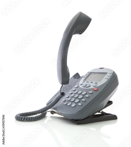 Gray office telephone isolated on a white background with floati