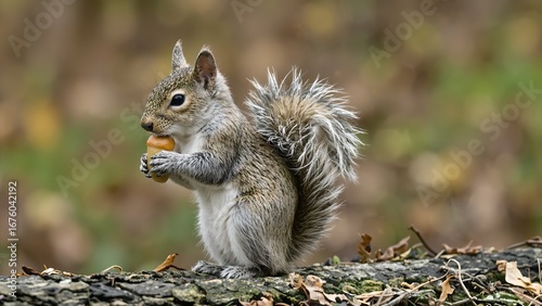 Gray Squirrel Eating an Acorn in Autumn Forest