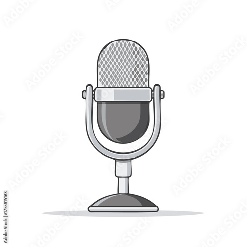 Grayscale Vintage Microphone with Stand for Audio Recording, Podcasting, and Live Broadcast