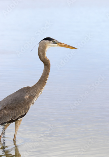 Great Blue Heron (Ardea Herodias) walking through shallow water at Ft. Desoto Park near St. Pete Beach, Florida searching for food.