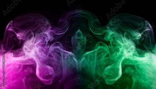 green and magenta abstract glowing mist on black background generative ai